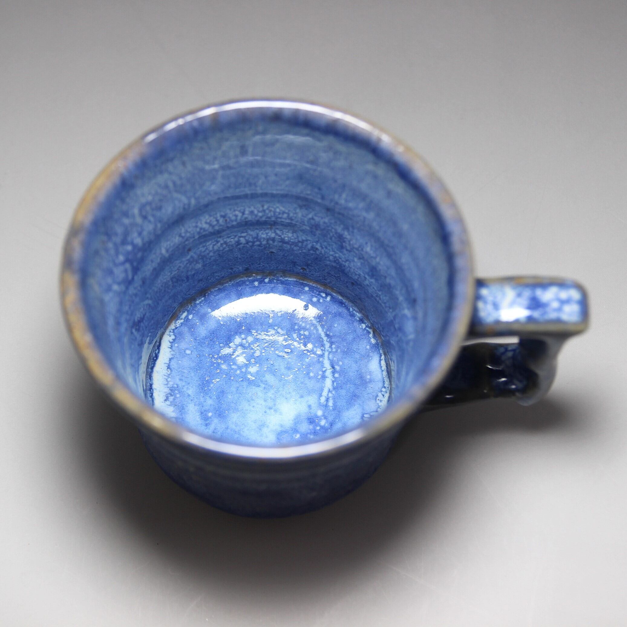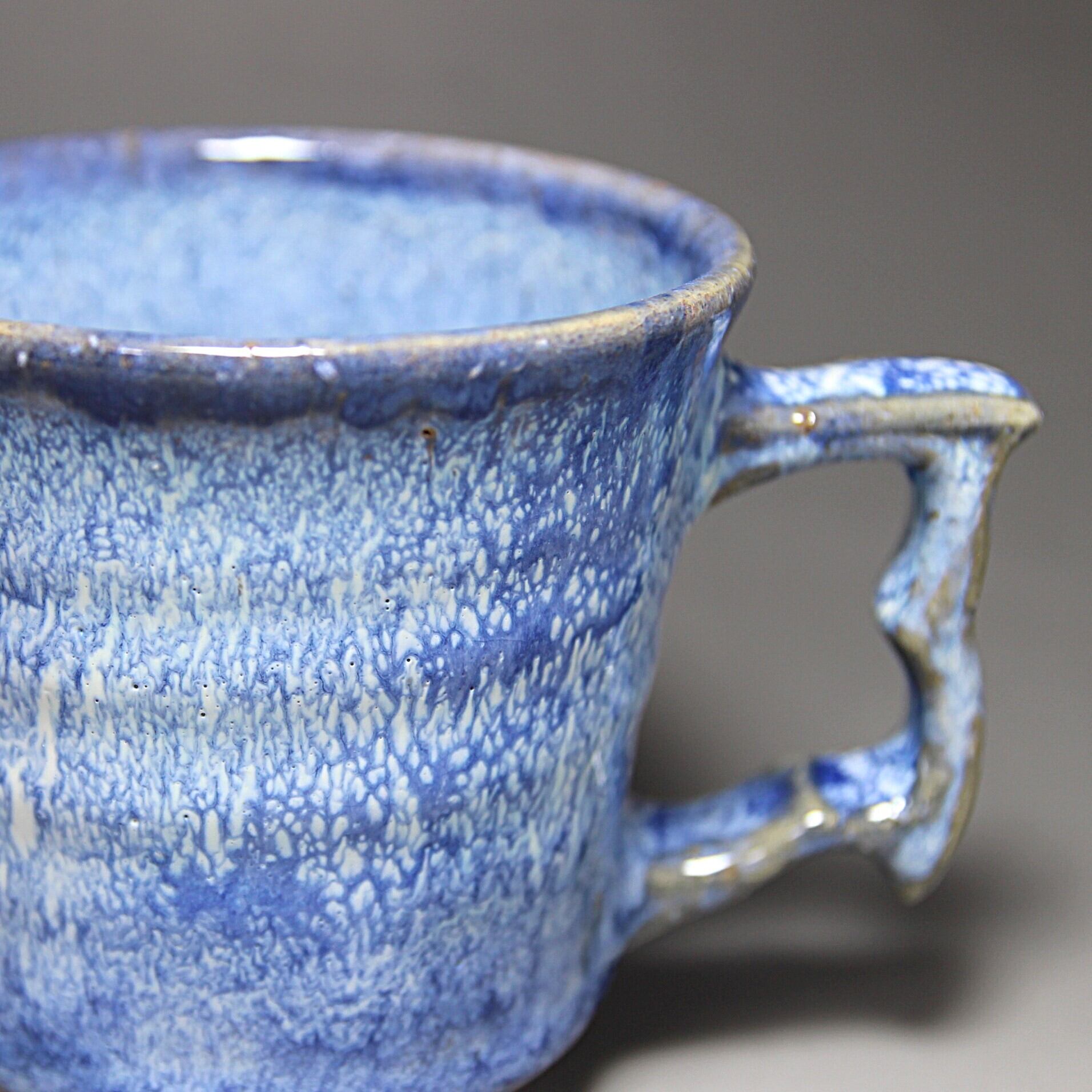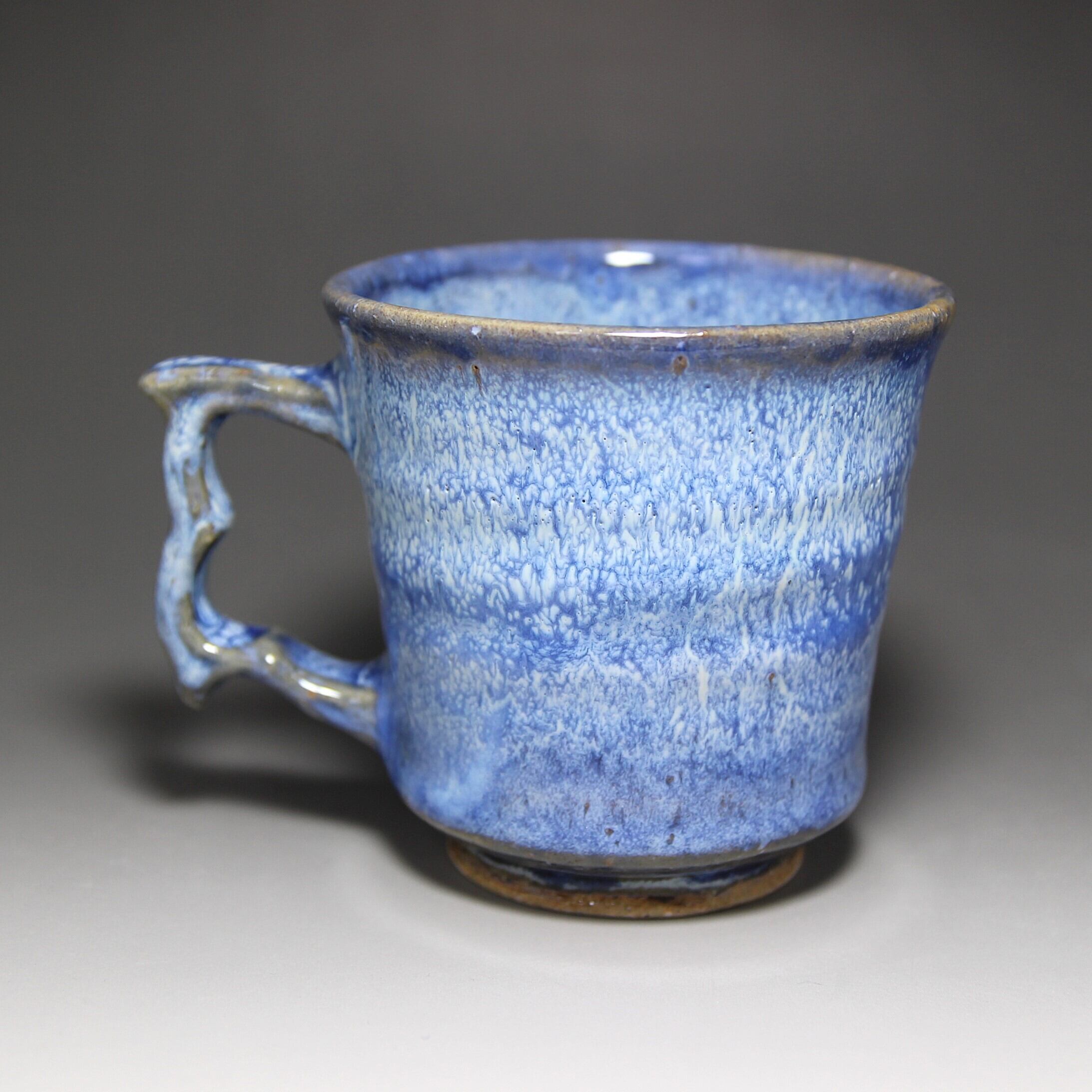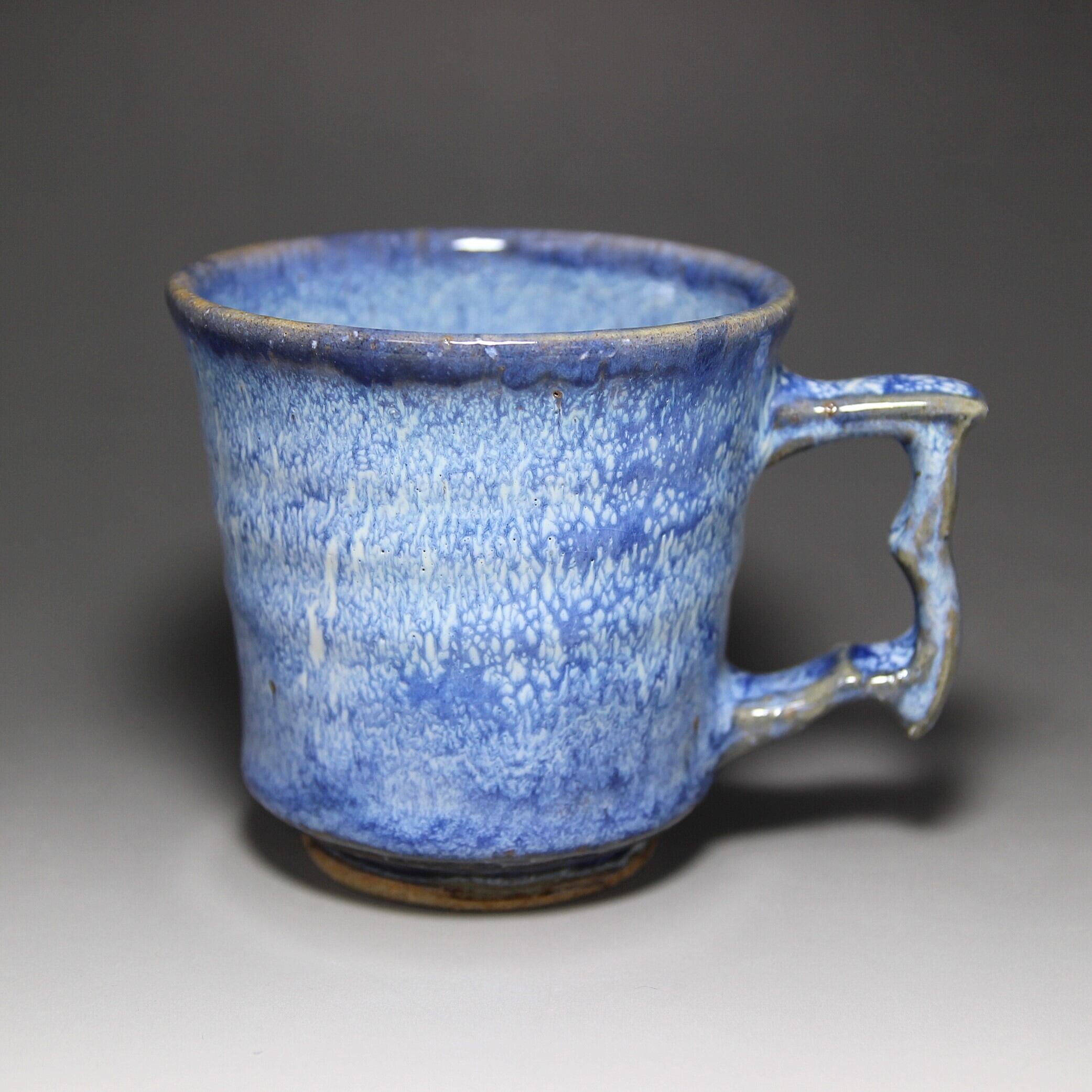 松雲山窯(松浦洞心 作) 縦13.2cm×横9.8cm×高さ10.0cm 紙箱包装 青と白の釉薬が混ざり斑紋のような景色になったマグカップです