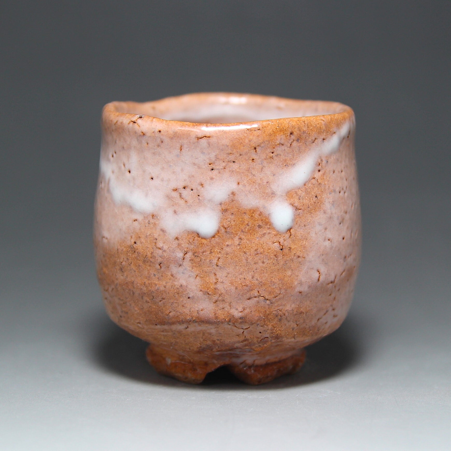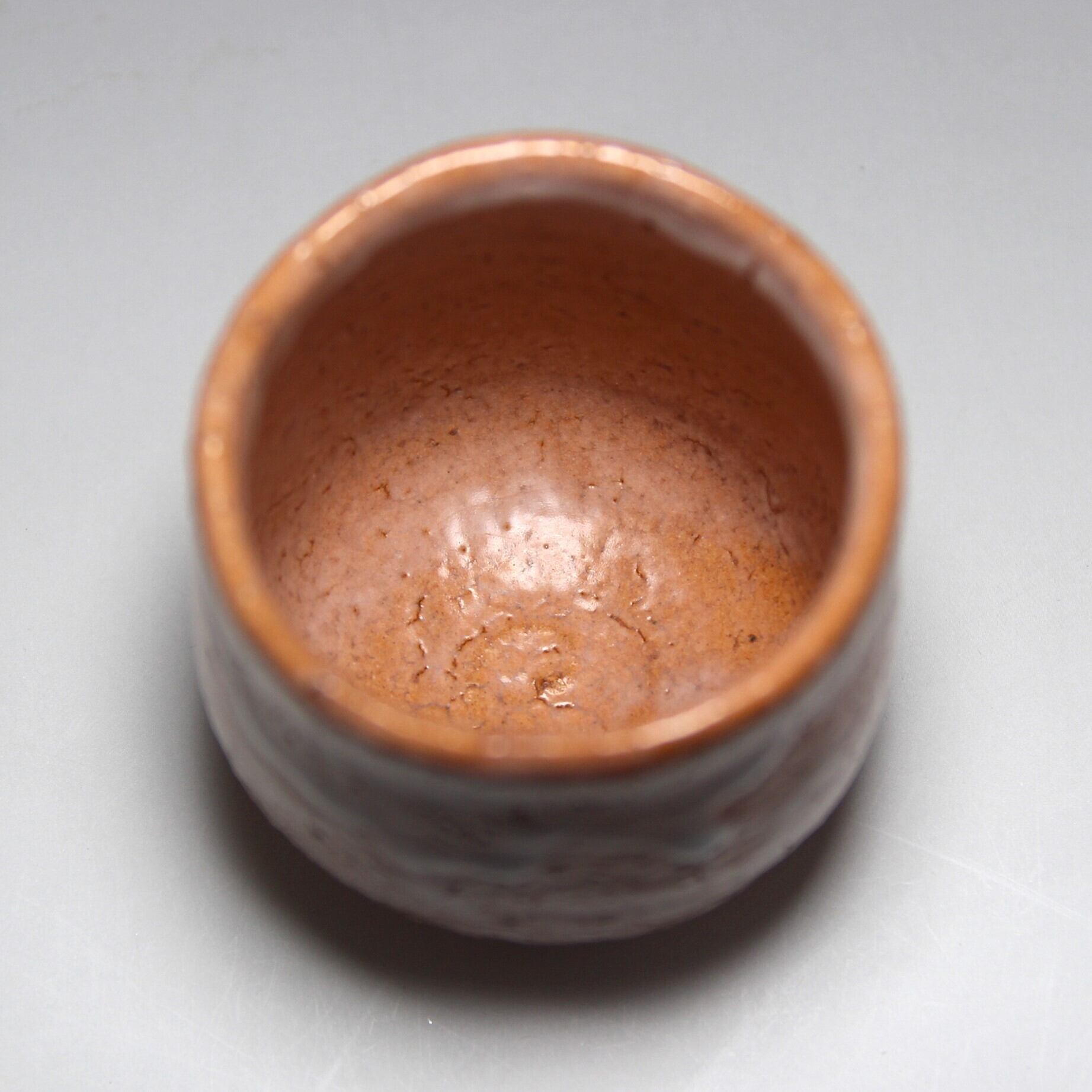 松雲山窯(松浦無元 作) 縦6.7cm×横6.7cm×高さ6.8cm 木箱包装 赤みを帯びざっくりとした貴重な胎土を使い、やさしい紅色に発色したぐい呑です。