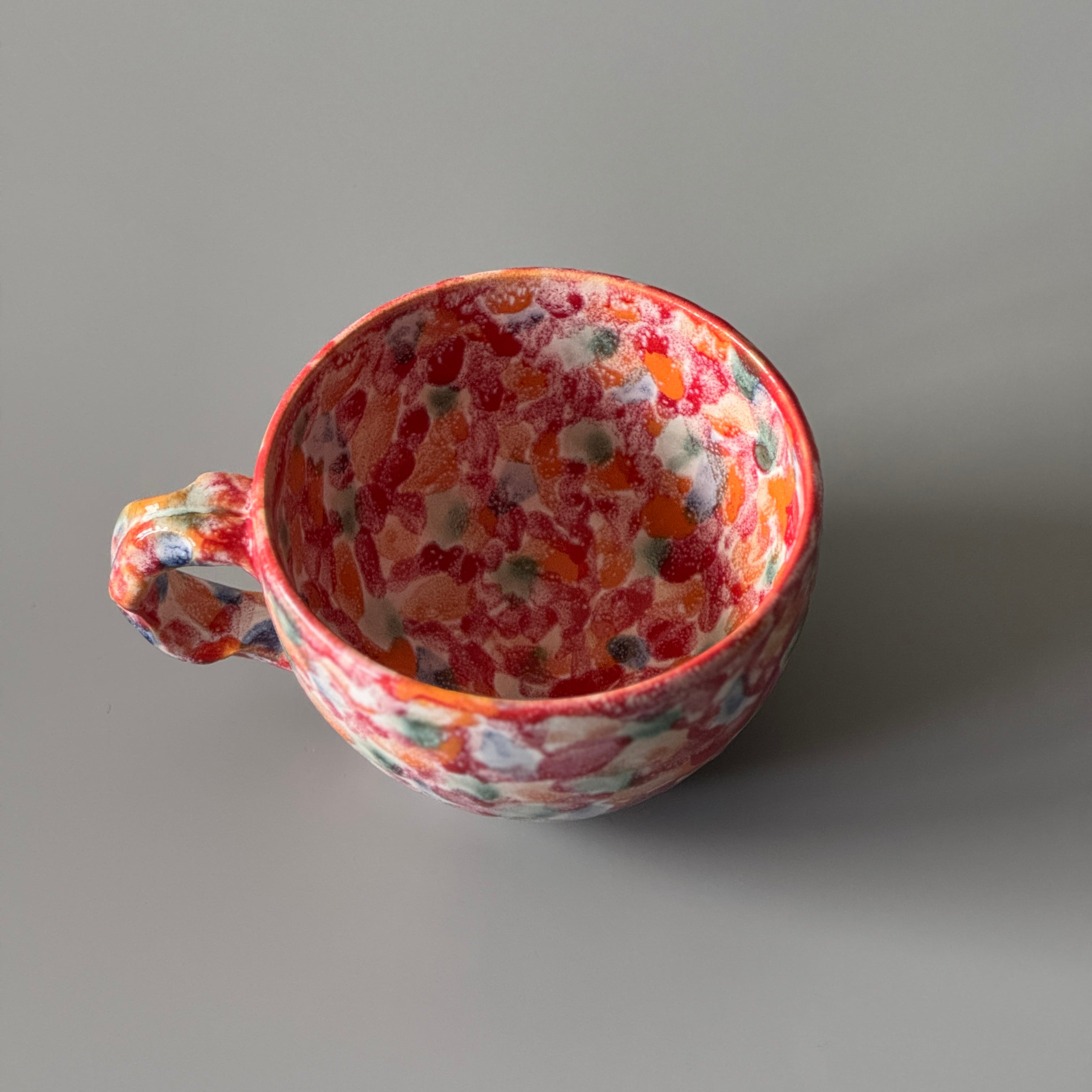陶房小田(小田 光治 作) 縦11.0cm×横11.0cm×高さ7.0cm 「紙箱入り」 彩(さい)シリーズのスープカップです。 赤・緑・青・オレンジの4色が色鮮やかな作品で、色合いのバランスと綺麗な発色が特徴です。 ※作品は全て手作りのため、発色と模様は写真と多少異なります。