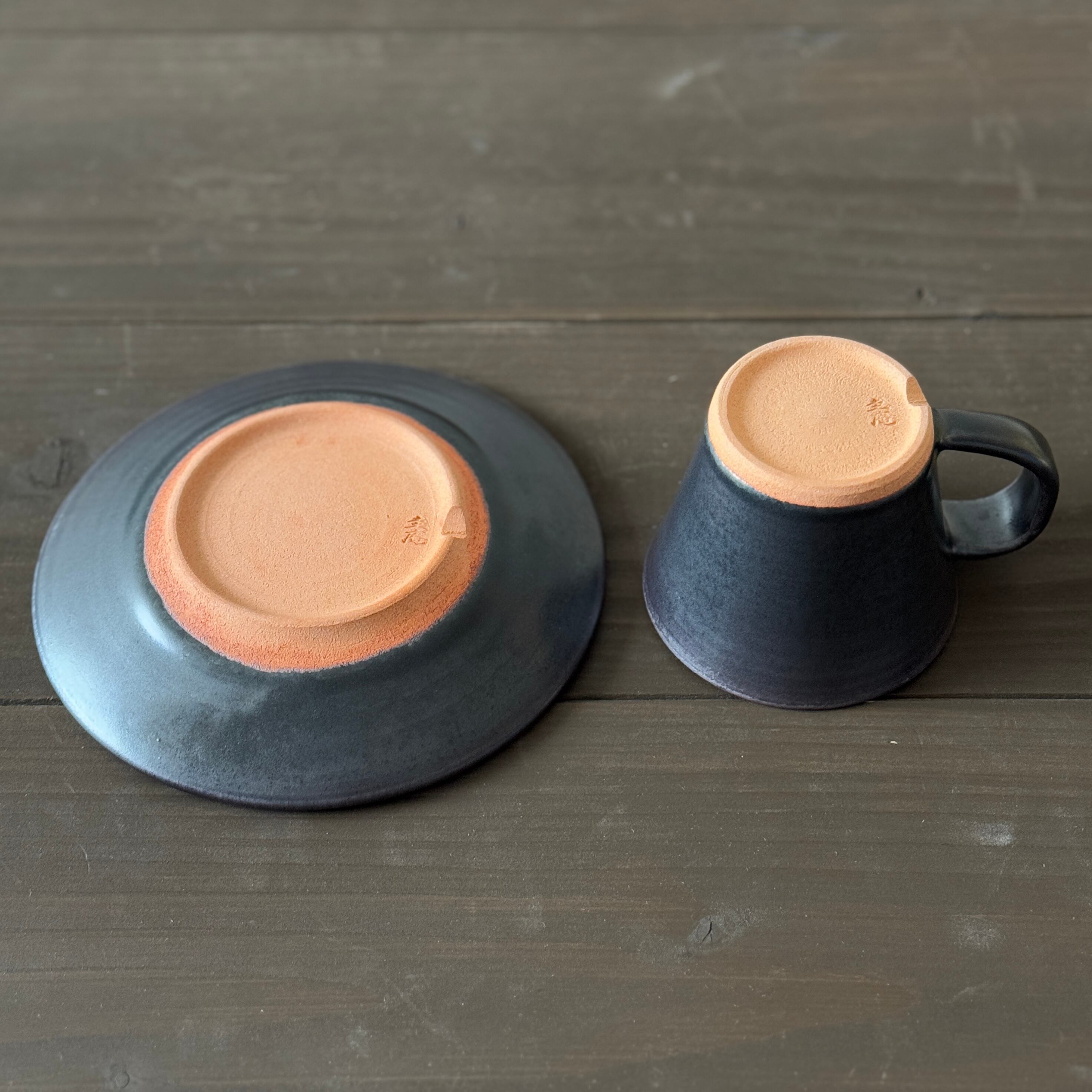 圭庵(庄 圭一郎 作) カップとソーサーがセットになった商品 マットな黒銀に優しい土感がアクセントとなっているスタイリッシュなうつわ サイズ カップ 直径8.5cm×高さ6.5cm ソーサー 直径14.5cm×高さ2.5cm 簡易包装